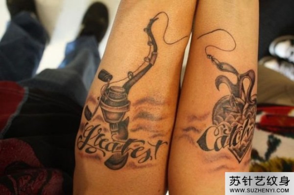 情侣钓鱼竿与鱼创意纹身_情侣纹身图案大全_纹身图吧