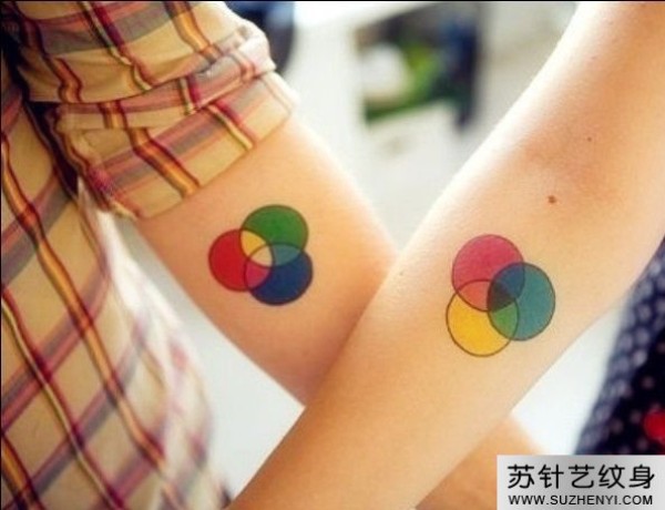 情侣彩色连环圈个性手臂纹身图_情侣纹身图案大全_纹身图吧