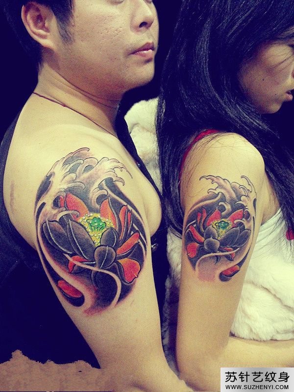 时尚个性情侣彩色莲花纹身图案_情侣纹身图案大全_纹身图吧