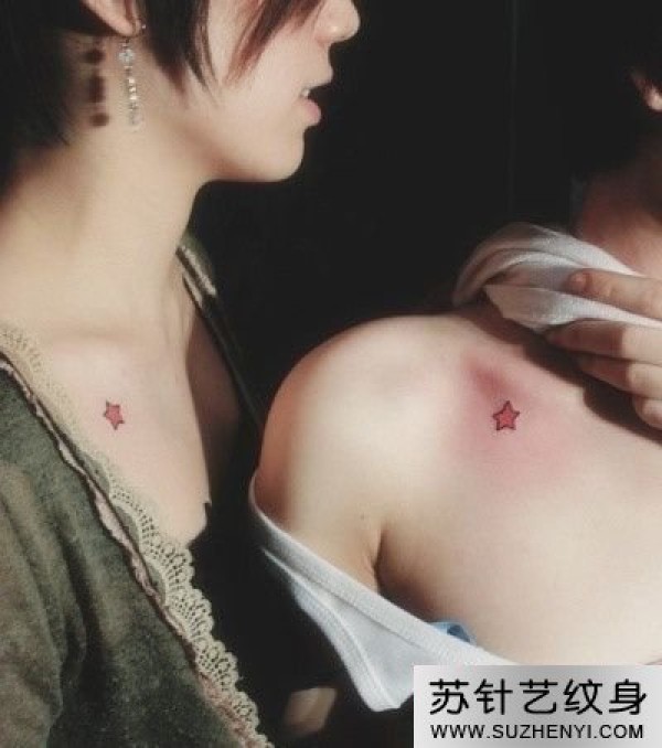 情侣锁骨个性五角星纹身图片_情侣纹身图案大全_纹身图吧