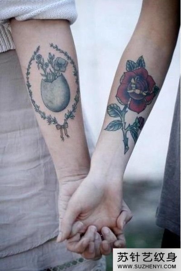 情侣时尚花与花瓶个性纹身_情侣纹身图案大全_纹身图吧