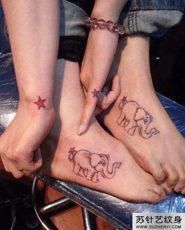 个性情侣脚部大象手部五角星纹身_情侣纹身图案大全_纹身图吧