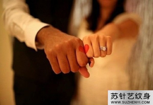 情侣手指红色心纹身图案_情侣纹身图案大全_纹身图吧