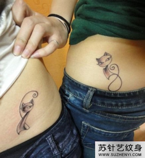 情侣腰上唯美个性猫咪纹身图案_情侣纹身图案大全_纹身图吧