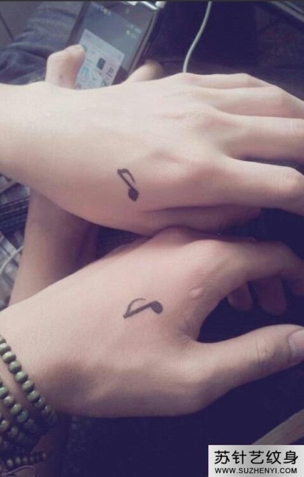 情侣手背上的音符图腾纹身_情侣纹身图案大全_纹身图吧