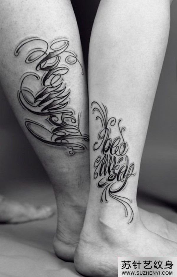 情侣唯美花体英文字母小腿纹身_情侣纹身图案大全_纹身图吧