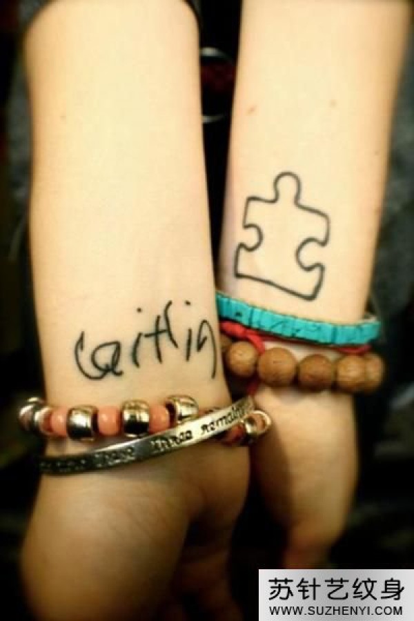 个性情侣手臂拼图和英文纹身_情侣纹身图案大全_纹身图吧