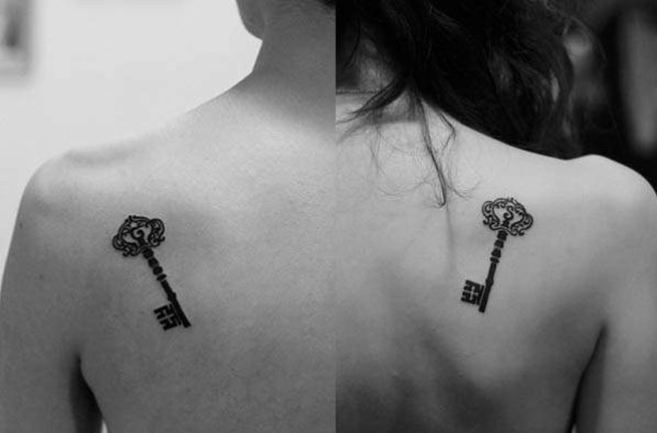 腿部情侣钥匙爱心锁纹身_情侣纹身图案大全_纹身图吧
