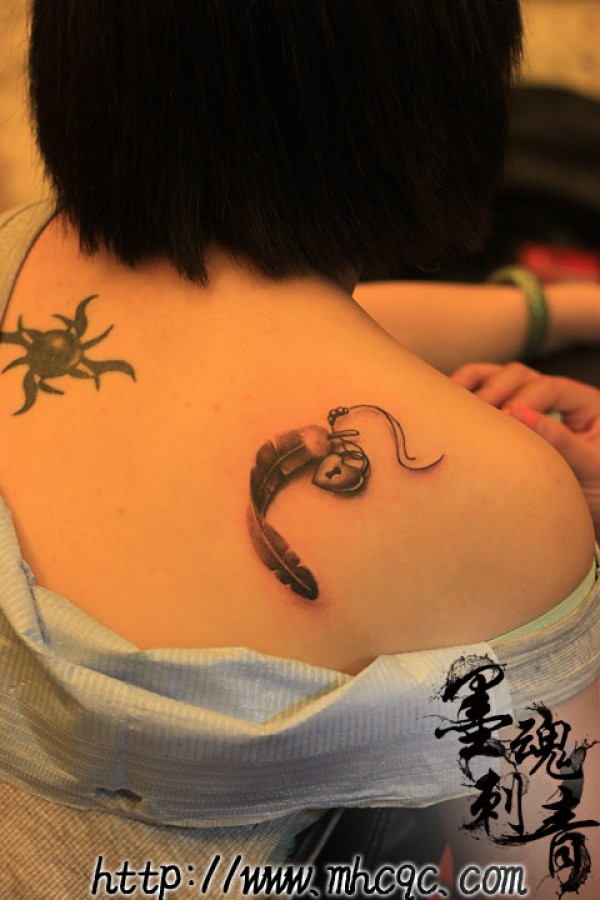 情侣肩背时尚羽毛纹身_情侣纹身图案大全_纹身图吧