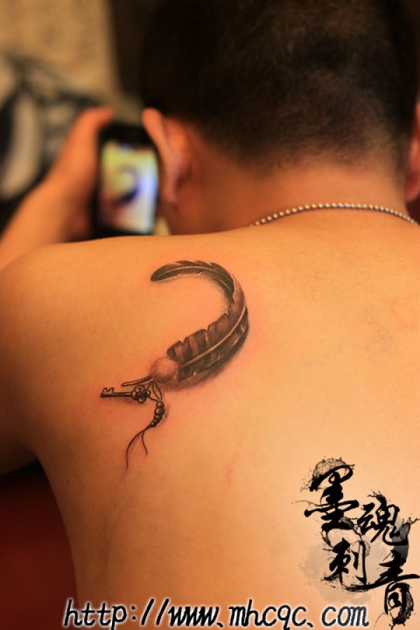 情侣肩背时尚羽毛纹身_情侣纹身图案大全_纹身图吧
