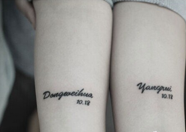90后甜蜜情侣手腕唯美情侣英文纹身纹身作品_情侣纹身图案大全_纹身图吧