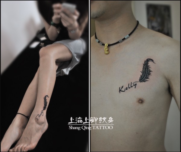 情侣肩背时尚羽毛纹身_情侣纹身图案大全_纹身图吧
