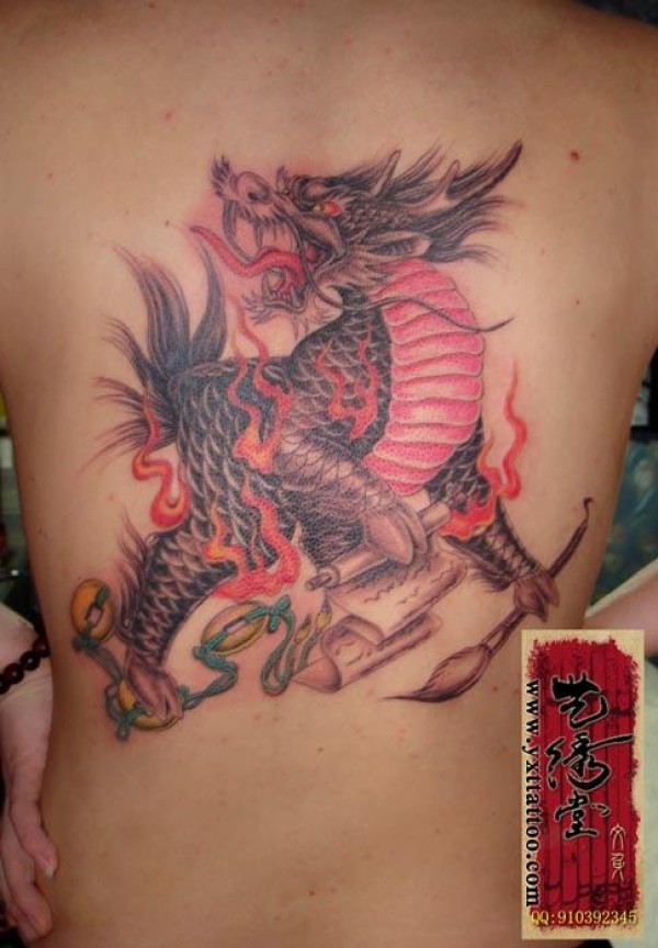 背部霸气的火麒麟纹身图片_麒麟纹身图案大全_纹身图吧