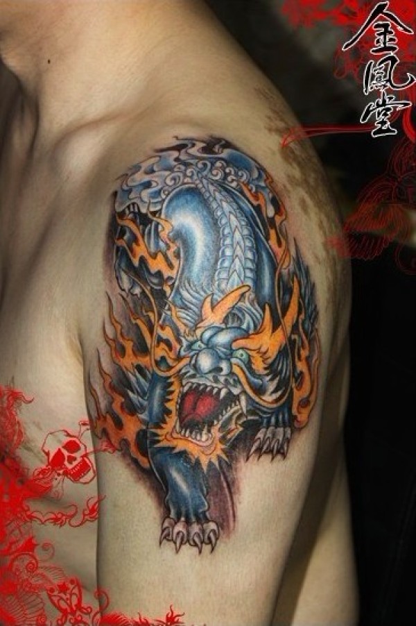金凤堂肩部麒麟纹身作品4783.jpg_麒麟纹身图案大全_纹身图吧