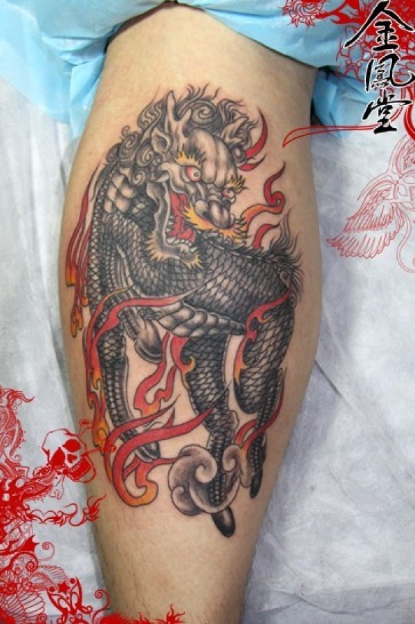 腿部麒麟纹身作品金凤堂作品_麒麟纹身图案大全_纹身图吧