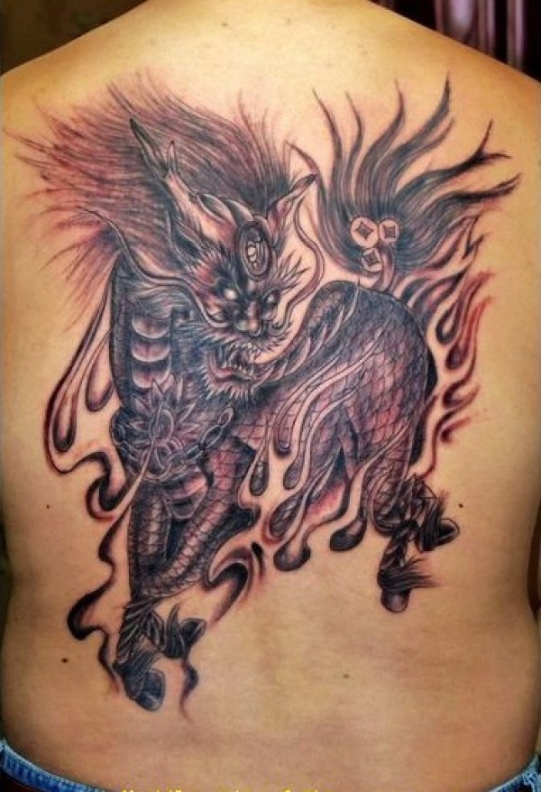 背部霸气的火麒麟纹身图片_麒麟纹身图案大全_纹身图吧