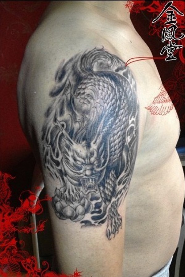 龙纹身手稿_一组老传统黑灰龙手稿纹身图案