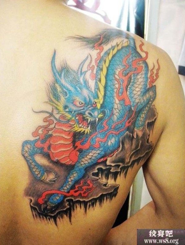 背部霸气的火麒麟纹身图片_麒麟纹身图案大全_纹身图吧
