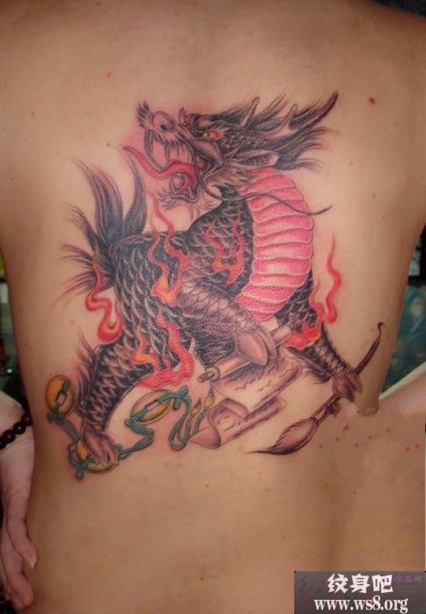 背部霸气的火麒麟纹身图片_麒麟纹身图案大全_纹身图吧