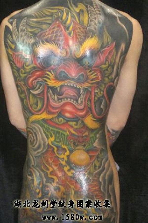 帅气满背彩色麒麟纹身图片图案(精品)_麒麟纹身图案大全_纹身图吧