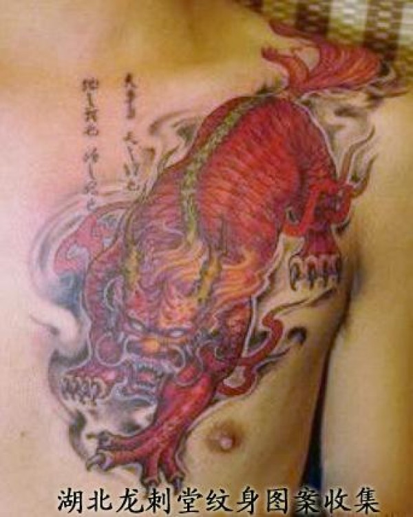 胸部超酷的招财神兽貔貅纹身图片_麒麟纹身图案大全_纹身图吧