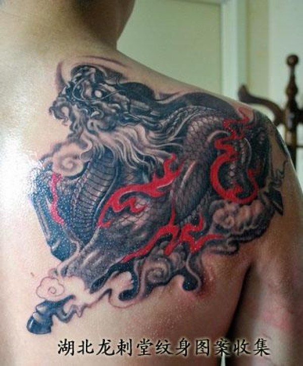 背部霸气的火麒麟纹身图片_麒麟纹身图案大全_纹身图吧