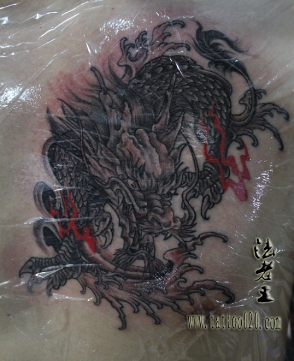 背部霸气的火麒麟纹身图片_麒麟纹身图案大全_纹身图吧