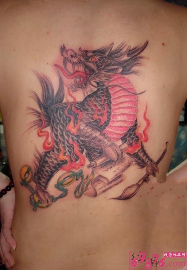背部霸气的火麒麟纹身图片_麒麟纹身图案大全_纹身图吧
