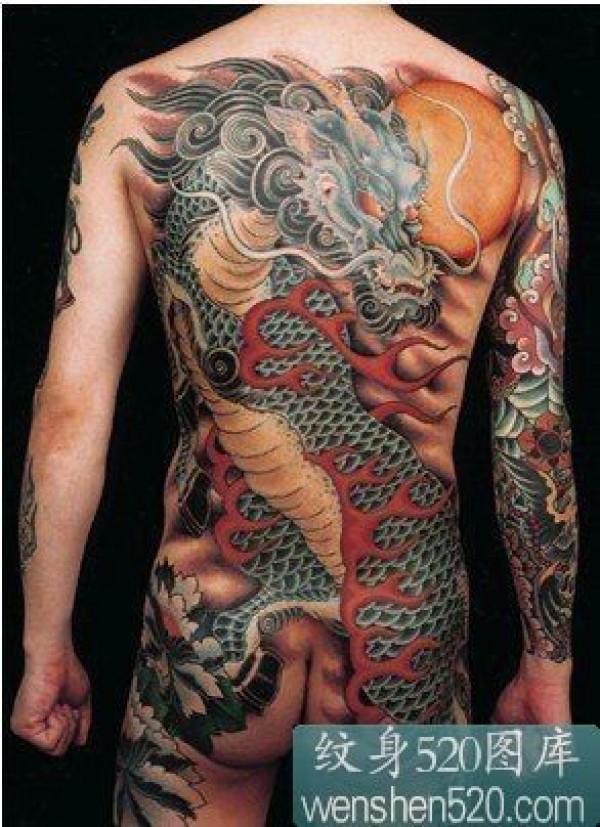 帅气满背彩色麒麟纹身图片图案(精品)_麒麟纹身图案大全_纹身图吧