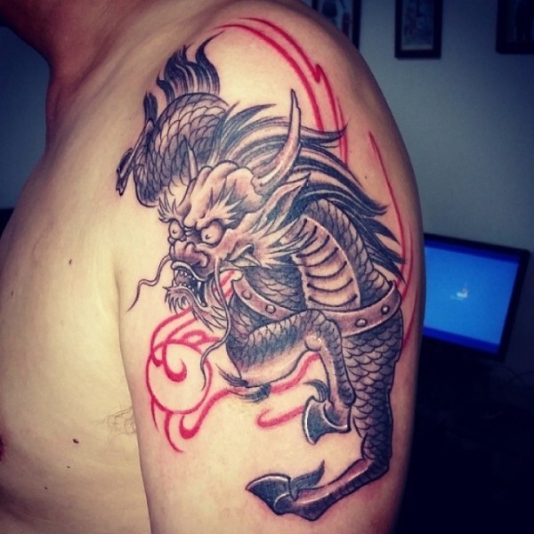背部霸气的火麒麟纹身图片_麒麟纹身图案大全_纹身图吧