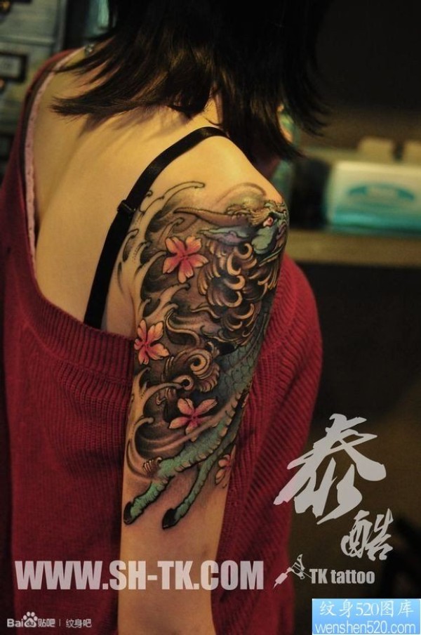 女人胳膊蓝色麒麟(2)纹身图片_麒麟纹身图案大全_纹身图吧