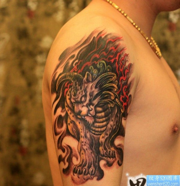 纹身520图库推荐一幅大臂麒麟纹身图片_麒麟纹身图案大全_纹身图吧