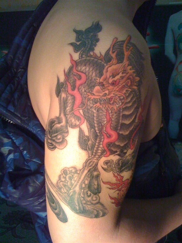 右臂上的麒麟祥云图案_麒麟纹身图案大全_纹身图吧