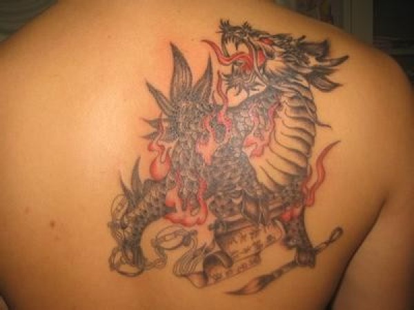背部霸气的火麒麟纹身图片_麒麟纹身图案大全_纹身图吧