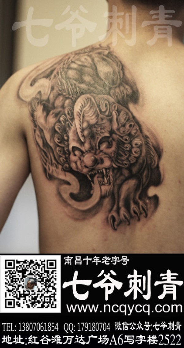 帅气的背部麒麟送子纹身图片_麒麟纹身图案大全_纹身图吧
