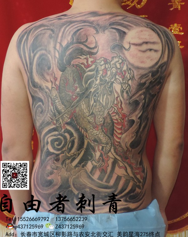 加背景望月火麒麟纹身作品后背麒麟纹身作品正_麒麟纹身图案大全_纹身图吧
