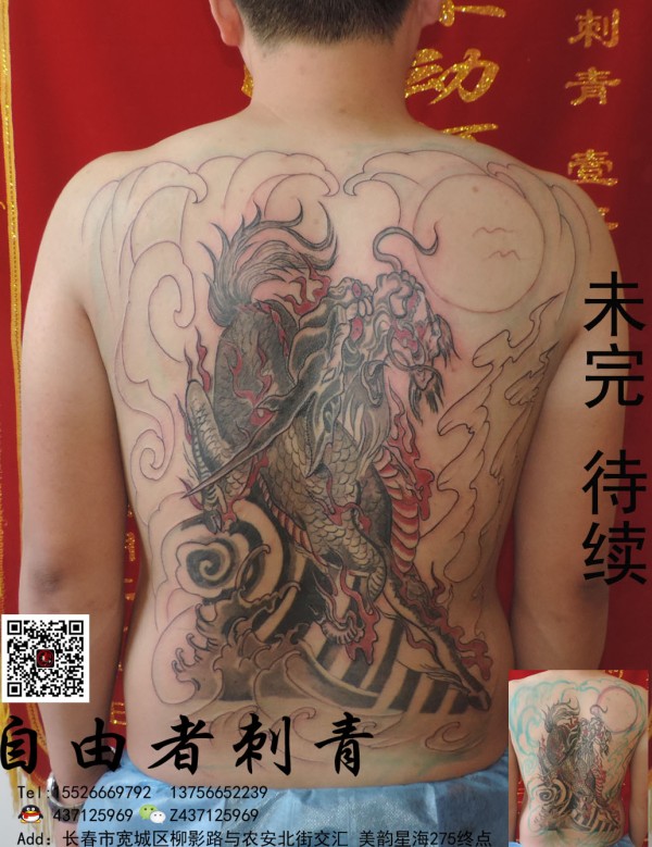 满背霸气侧漏的麒麟纹身图片后背麒麟修改上色_麒麟纹身图案大全_纹身图吧