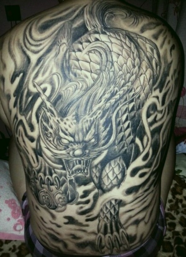 帅气满背彩色麒麟纹身图片图案(精品)_麒麟纹身图案大全_纹身图吧