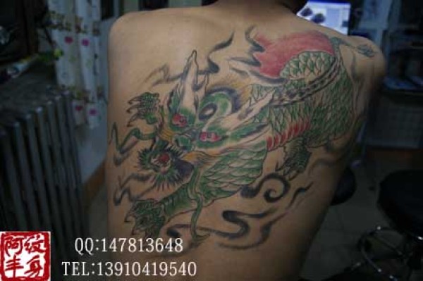 帅气满背彩色麒麟纹身图片图案(精品)_麒麟纹身图案大全_纹身图吧