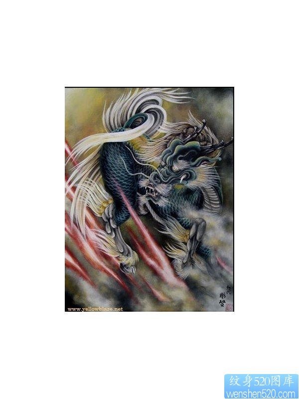 一款经典的麒麟纹身手稿素材_麒麟纹身图案大全_纹身图吧