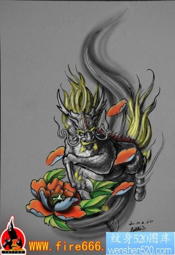 传统莲花麒麟纹身图片_麒麟纹身图案大全_纹身图吧
