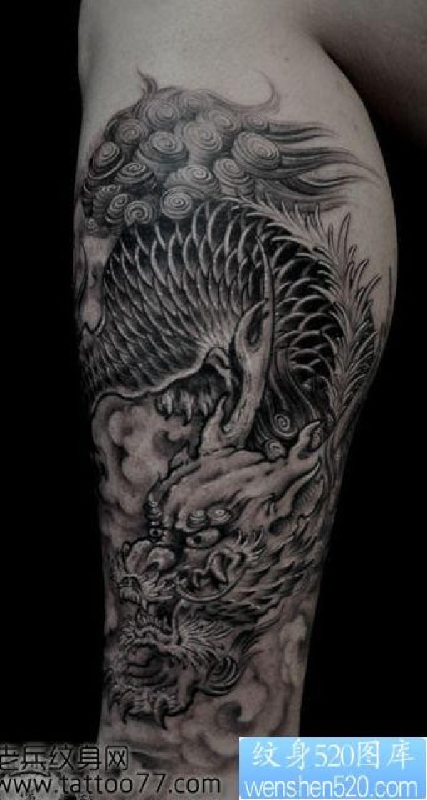 腿部流行帅气的麒麟纹身图片_麒麟纹身图案大全_纹身图吧