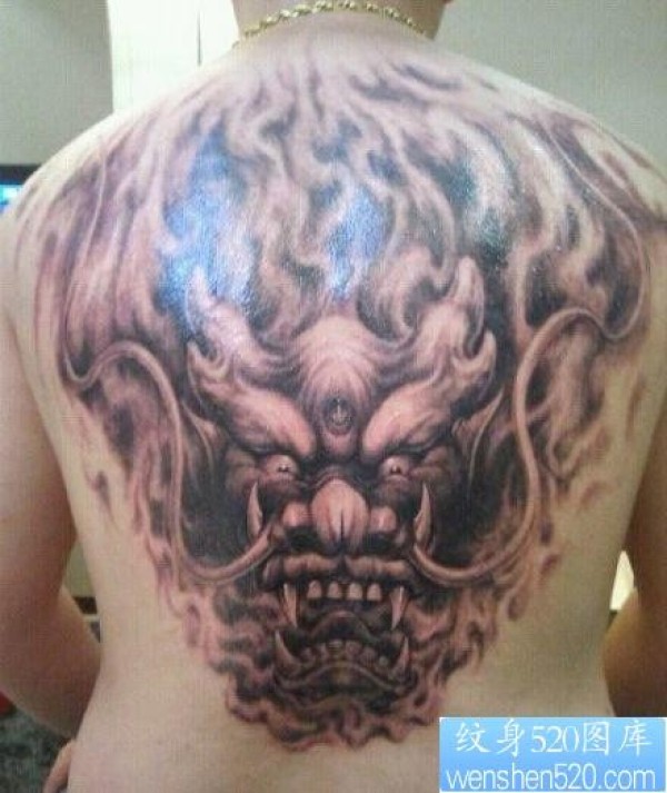背部霸气的火麒麟纹身图片_麒麟纹身图案大全_纹身图吧