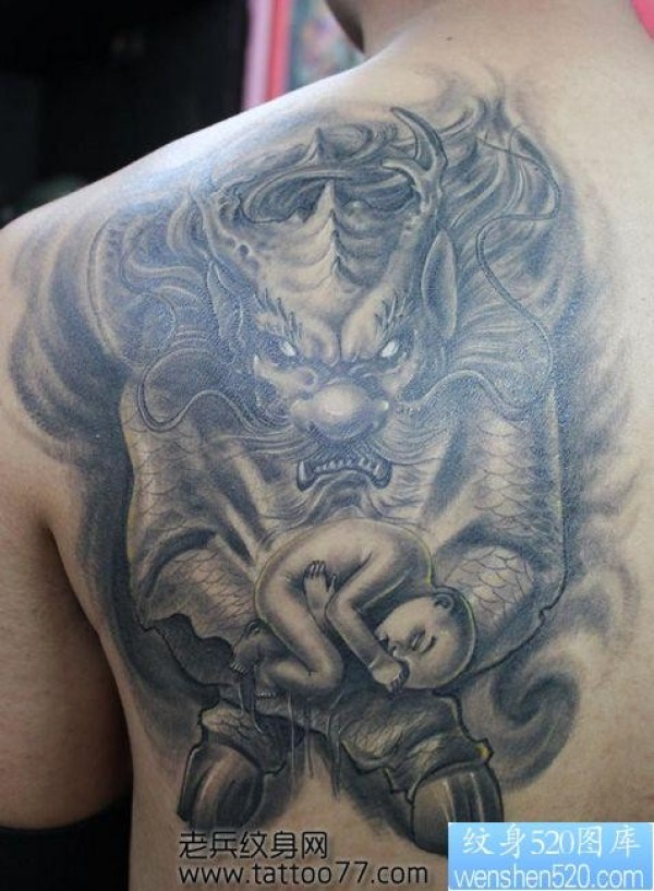 帅气的背部麒麟送子纹身图片_麒麟纹身图案大全_纹身图吧