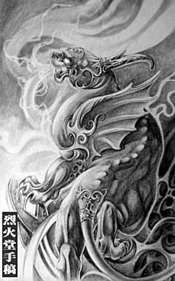 龙纹身手稿_一组老传统黑灰龙手稿纹身图案