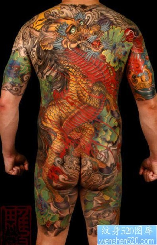帅气满背彩色麒麟纹身图片图案(精品)_麒麟纹身图案大全_纹身图吧