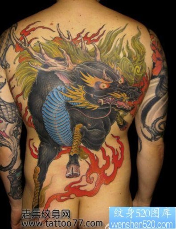 超霸气的满背麒麟纹身图片_麒麟纹身图案大全_纹身图吧