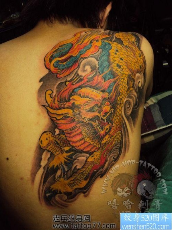 帅气满背彩色麒麟纹身图片图案(精品)_麒麟纹身图案大全_纹身图吧