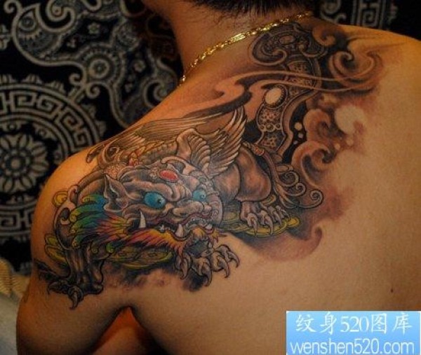 肩背招财神兽貔貅纹身图片_麒麟纹身图案大全_纹身图吧