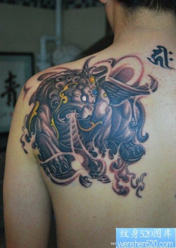 男生肩背超酷的神兽貔貅纹身图片_麒麟纹身图案大全_纹身图吧